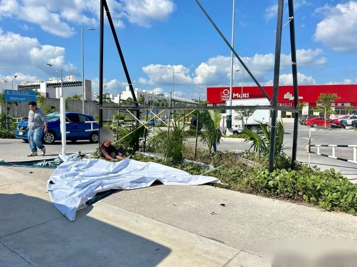 Playa del Carmen, 6 de diciembre. – Un trabajador que realizaba labores de mantenimiento cae desde una altura de casi cuatro metros, luego de perder el equilibrio tras los fuertes vientos en la periferia de la Plaza Petempich, caída de la que logró sobrevivir.