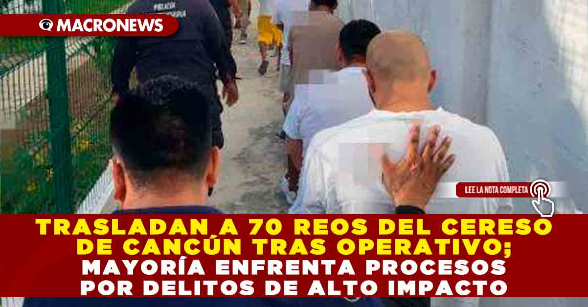 Redacción Macronews.- En los últimos minutos del jueves, elementos de la Secretaría de Seguridad Ciudadana realizaron el traslado de alrededor de 70 Personas Privadas de la Libertad (PPL) desde el Centro de Reinserción Social (Cereso) de Cancún hacia otros penales del estado o Centros Federales de Readaptación Social (Ceferesos). La acción se llevó a cabo tras un operativo reciente en el interior del penal, cuyo resultado sobre objetos y sustancias prohibidas localizadas no ha sido revelado oficialmente.