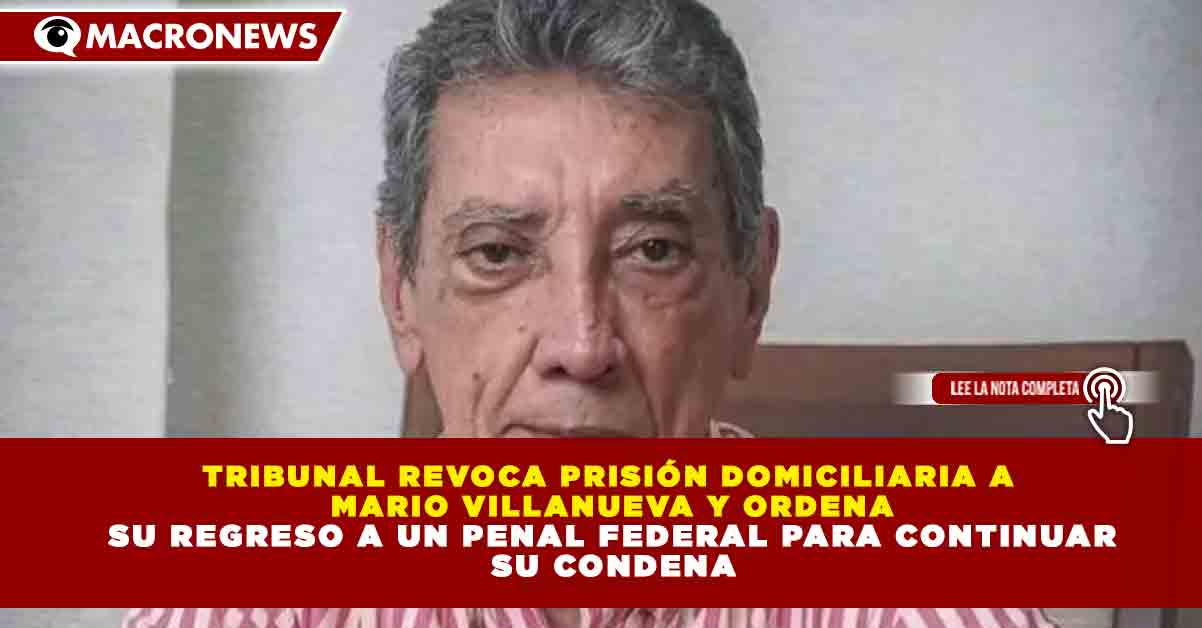 Redacción Macronews.- Un tribunal federal revocó el beneficio de prisión domiciliaria al exgobernador de Quintana Roo, Mario Villanueva Madrid, por lo que deberá regresar a un centro penitenciario federal para continuar cumpliendo su condena, según resolvieron autoridades judiciales tras revisar su situación jurídica.