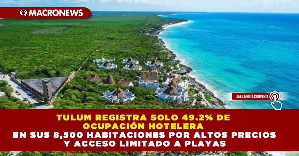 El destino, que alguna vez fue el favorito de celebridades internacionales, registra actualmente una ocupación hotelera del 49.2%, de un total de 8,500 habitaciones distribuidas entre Akumal, la zona costera, la zona de transición y el centro de Tulum. En esta última, las reservas alcanzaron apenas el 20%, según datos de la Secretaría de Turismo estatal.