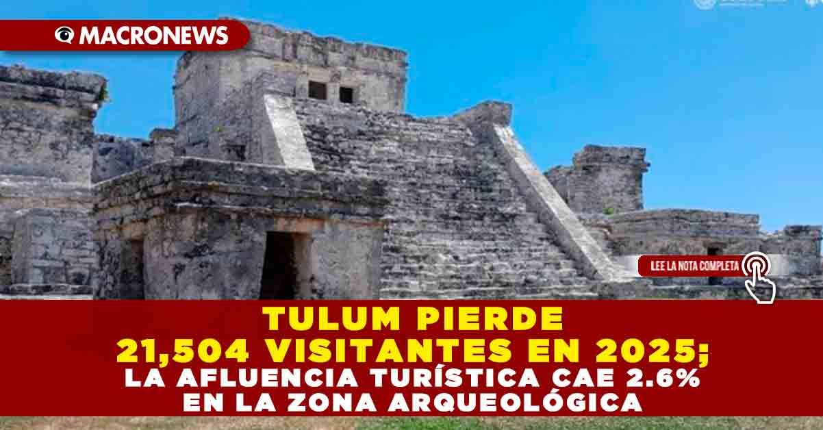 Redacción Macronews por Santiago Ramírez.- La zona arqueológica de Tulum reportó una disminución de 21,504 visitantes en los primeros ocho meses de 2025, lo que representa una caída del 2.6% respecto al mismo periodo del año anterior.