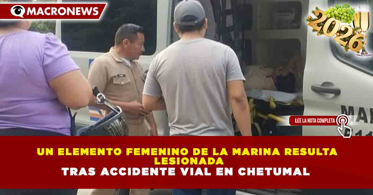 Redacción Macronews.- Una mujer perteneciente a la Secretaría de Marina resultó lesionada tras verse involucrada en un accidente vial registrado este fin de semana en la ciudad de Chetumal, lo que movilizó a cuerpos de emergencia y autoridades de seguridad para brindarle atención inmediata en el lugar de los hechos.