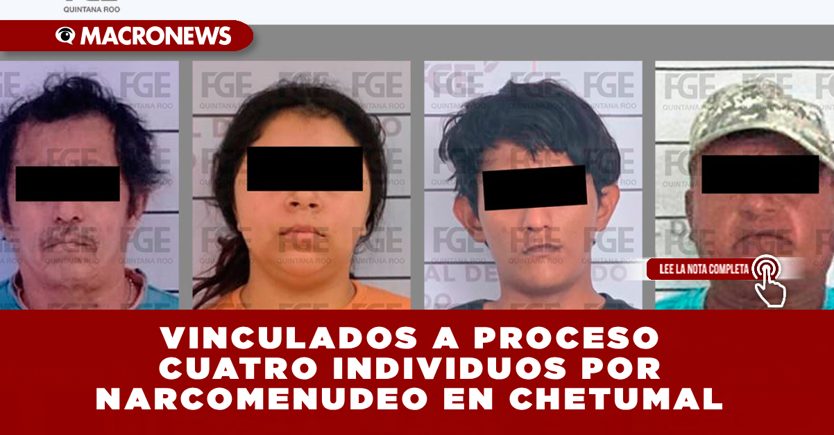 CHETUMAL, Q. ROO. La Fiscalía General del Estado (FGE) de Quintana Roo logró la vinculación a proceso de cuatro personas —Fernando “N”, José Enrique “N”, Gretel Imara “N” y José “N”— por su probable participación en delitos contra la salud en la modalidad de narcomenudeo en este municipio.