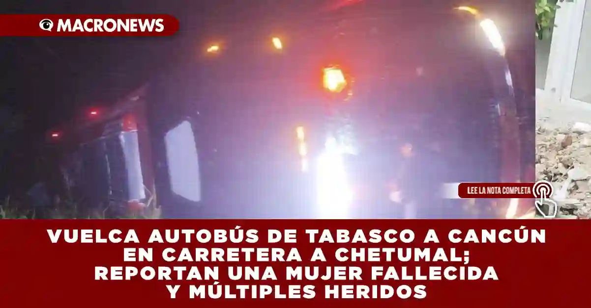 NACHICOCOM, Q. ROO. Un fatal accidente se registró la madrugada de este viernes, alrededor de las 2:00 a.m., en la carretera Nachicocom-Chetumal, cuando un autobús de la línea Tour’s Acosta volcó, dejando como saldo una mujer fallecida, varios heridos, incluyendo menores, y un alto número de lesionados.