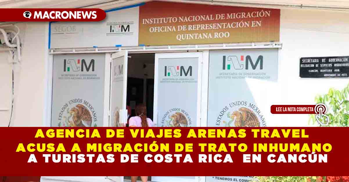 La agencia de viajes Arenas Travel y Tours que trae turismo de Costa Rica a Cancún envió una carta a la Asociación de Hoteles de Cancún, Puerto Morelos e Isla Mujeres, luego que se impidió el ingreso de un grupo de 15 visitantes, quienes de acuerdo con la queja fueron víctimas de trato indignante por parte de Migración.