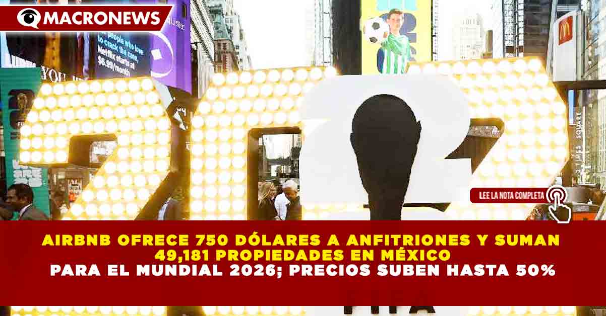 Redacción Macronews.- La plataforma de hospedaje Airbnb lanzó un programa de incentivos que ofrece hasta 750 dólares a nuevos anfitriones que registren sus viviendas en ciudades sede del Mundial de Futbol 2026, en un contexto donde México ya acumula 49 mil 181 propiedades disponibles en plataformas digitales y con incrementos de hasta 50% en los precios de alojamiento durante los días de partido.