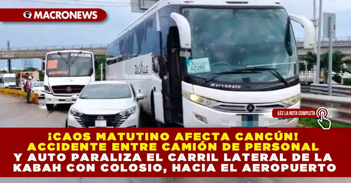 ¡Caos Matutino afecta Cancún! Accidente entre Camión de Personal y auto Paraliza el Carril Lateral de la Kabah con Colosio, hacia el Aeropuerto