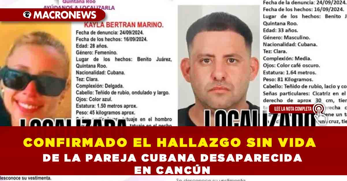 CONFIRMADO EL HALLAZGO SIN VIDA DE LA PAREJA CUBANA DESAPARECIDA EN CANCÚN