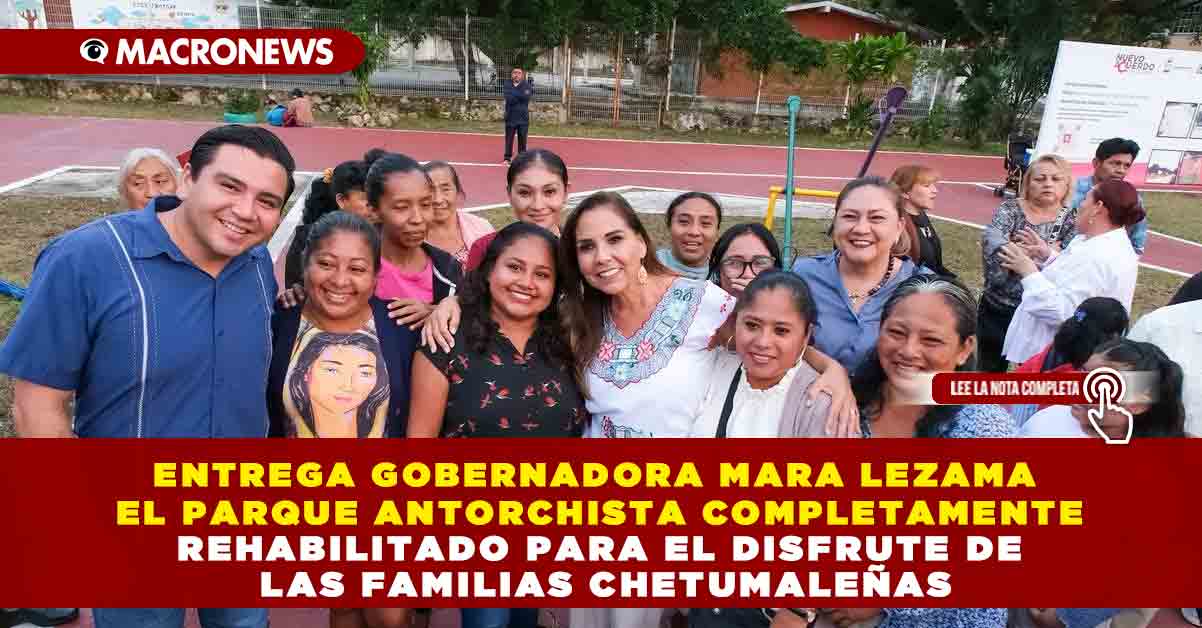 Chetumal. – Con un exhorto para que las familias disfruten de su parque totalmente rehabilitado, la gobernadora Mara Lezama Espinosa entregó los trabajos de rescate del Parque Antorchista, que forma parte de los espacios públicos que fortalecen la vida comunitaria en Chetumal.