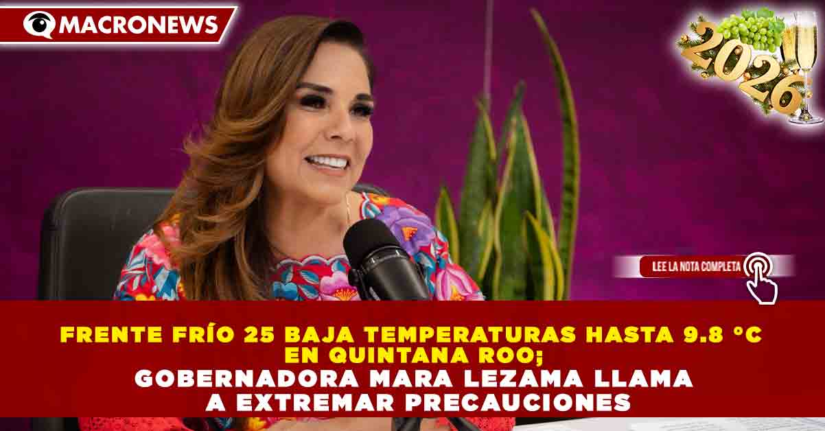 Redacción Macronews.- Debido a los efectos del frente frío número 25, este viernes se registraron temperaturas mínimas de hasta 9.8 grados Celsius en diversos puntos de Quintana Roo, situación poco habitual en la región. Ante este descenso térmico, la gobernadora Mara Lezama hizo un llamado a la población para extremar precauciones, abrigarse adecuadamente y cuidar especialmente a niñas, niños y personas adultas mayores, quienes son más vulnerables a las bajas temperaturas.