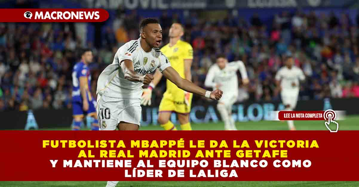 Un gol de Kylian Mbappé volvió a salvar al Real Madrid. El combinado merengue venció con un marcador de 0-1 al Getafe en el Coliseum, un equipo que sobrevivió los últimos minutos con dos hombres menos en la cancha. Con este triunfo, elequipo blanco se mantiene en la primera posición de LaLiga tras las primeras nueve jornadas.