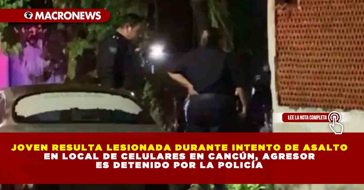 JOVEN RESULTA LESIONADA DURANTE INTENTO DE ASALTO EN LOCAL DE CELULARES EN CANCÚN, AGRESOR ES DETENIDO POR LA POLICÍA
