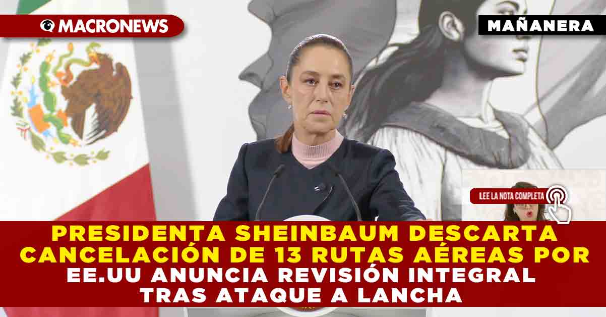 Redacción Macronews .- La presidenta de México, Claudia Sheinbaum, afirmó hoy que el Gobierno mexicano no reconocerá como definitivas las sanciones impuestas por los Estados Unidos que implican la cancelación de 13 rutas aéreas entre ambos países, incluyendo conexiones desde el Aeropuerto Internacional Felipe Ángeles (AIFA) y el Aeropuerto Internacional de la Ciudad de México (AICM). En conferencia de prensa, precisó que, como medida de respuesta, se ha ordenado una “revisión integral” de los protocolos de seguridad e infracciones, luego de que un ataque a una lancha mexicana encendiera la alerta diplomática.