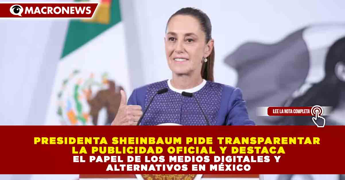 Redacción Macronews.- La presidenta de México, Claudia Sheinbaum, afirmó que se debe garantizar el 100% de transparencia en la asignación de la publicidad oficial, al tiempo que defendió el papel de los medios digitales y alternativos en el actual ecosistema informativo del país.