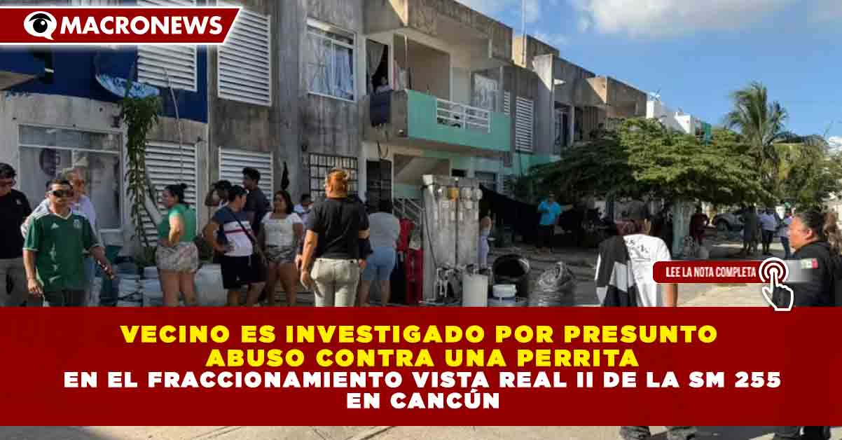 Redacción Macronews.- Un caso de presunto maltrato animal registrado en la Supermanzana 255 del fraccionamiento Vista Real II, en Cancún, ha generado indignación entre vecinos y usuarios en redes sociales, luego de que se denunciara la agresión contra una perrita presuntamente por parte de un residente de la zona.